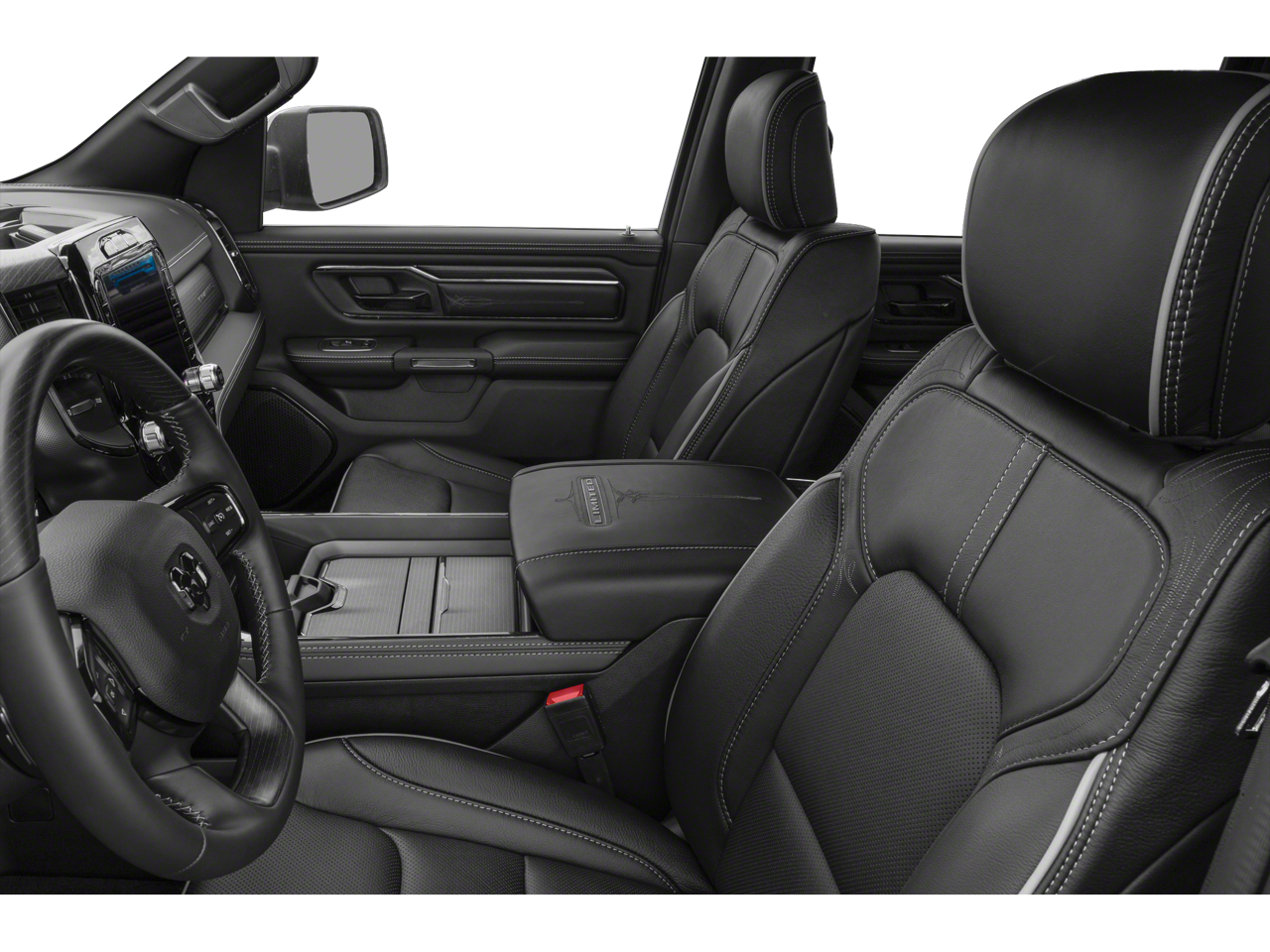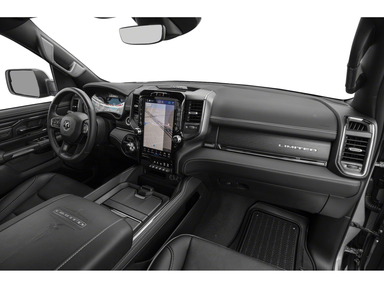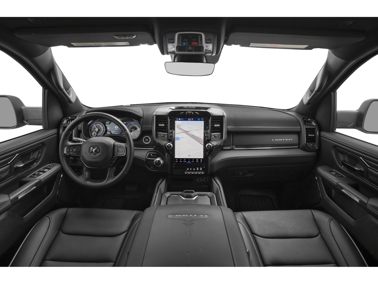 Leather Seats, Navigation, 4x4, Heated Driver Seat, Heated Rear Seat Ram Limited with Bright White Clearcoat exterior and Black interior features a 8 Cylinder Engine with 395 HP at 5600 RPM*.